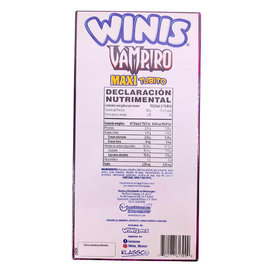 Winis Maxi Tubo Vampiro Uva-Grosella 16pzPrecio habitual $ 35.64 MXNPrecio habitualPrecio unitario / por-