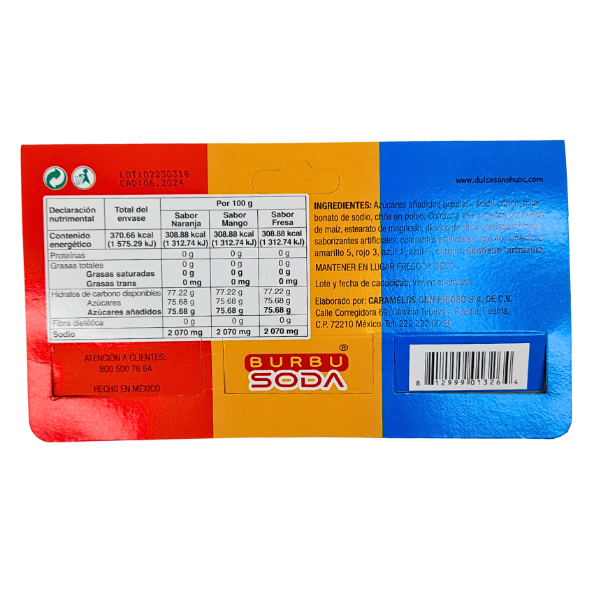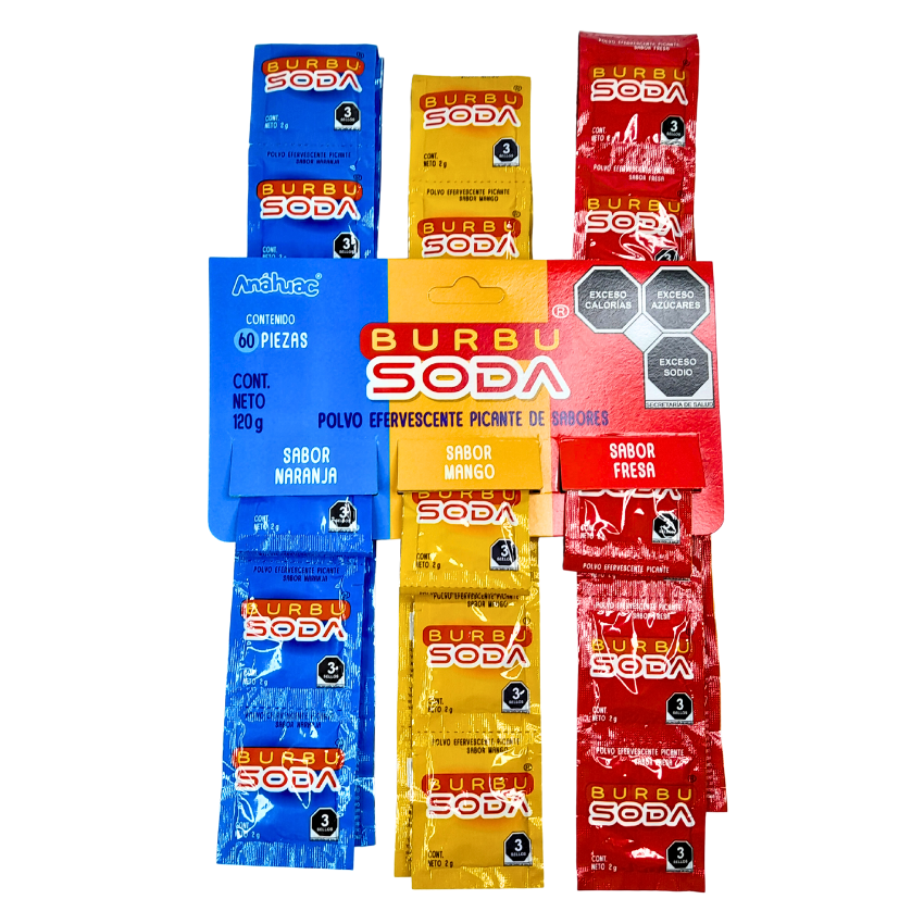 Polvito Burbu Soda de Dulces Anahuac es un clásico en la historia de los dulces Mexicanos, su efecto efervescente y toque picante hacen que sus sabores naranja, mango y fresa se disfruten al máximo. Pide los tuyos hoy mismo y sé parte de la experiencia Burbu Soda. Dulcerías y Abarroteras Vázquez, una dulce tradición.