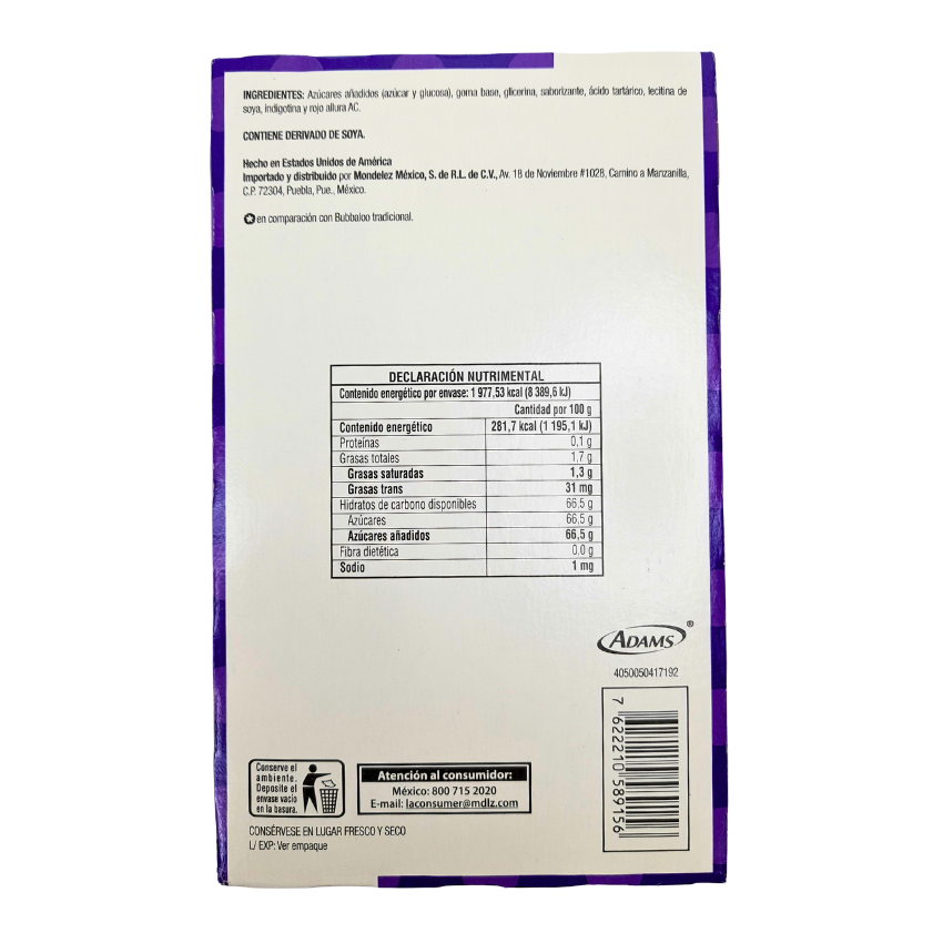 Adams Bubbaloo Chicle Mega Uva 18 Piezas