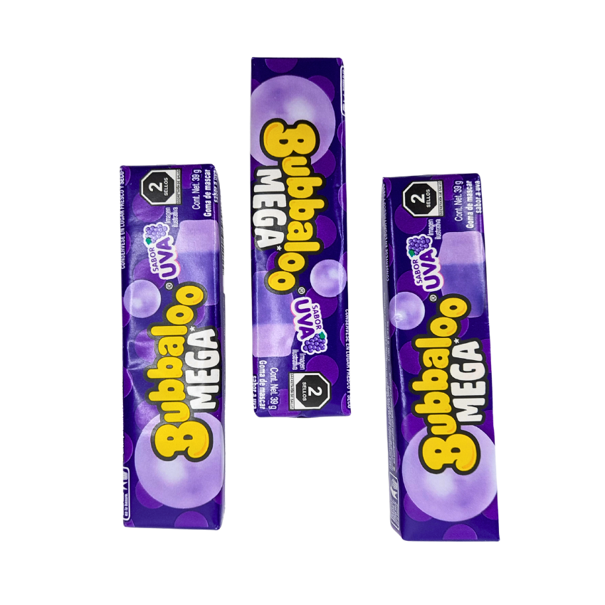 Una nueva forma de disfrutar tus chicles Bubbaloo, esta goma de mascar en presentación mega sin duda te sorprenderá y se convertirá en tu favorita. Prueba su delicioso sabor Uva y no olvides que son ideales para compartir con quien tú lo desees. Somos Dulcerías y Abarroteras Vázquez, una dulce tradición.