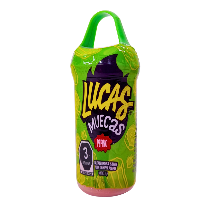 Lucas Muecas es una deliciosa golosina de caramelo con sabor pepino y chilito en polvo para darle un toque más picosito a tu paladar con cada bocado. Llévalo a todas partes y disfrútalo donde y cuando quieras. Pide los tuyos y recíbelos en la puerta de tu casa o visítanos en cualquiera de nuestras 42 sucursales.