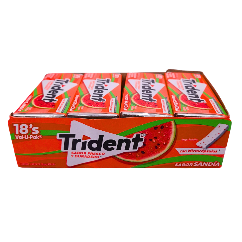 Adams nos presenta una deliciosa goma de mascar ideal para cualquier ocasión, cuida y refresca tu aliento con el delicioso sabor de Trident Val-U-Pack Sandía. Pide los tuyos hoy mismo y llévalos contigo a donde sea y deja esa huella de frescura al rededor de ti. Dulcerías y Abarroteras Vázquez, una dulce tradición.